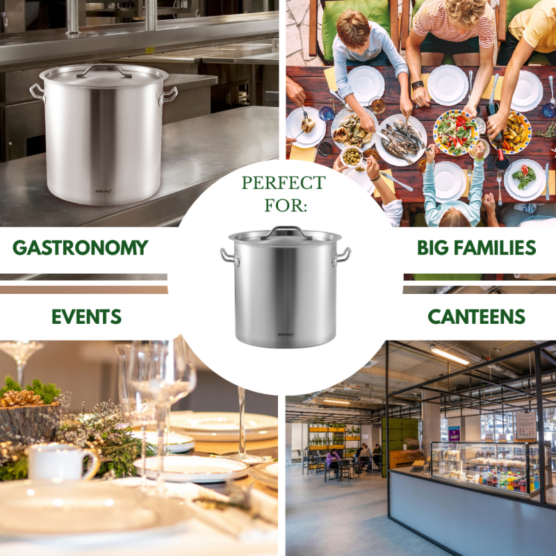 KINGHoff professionaalne toiduvalmistamise pott mahuga 33 l on usaldusväärne lahendus köökidele, kus oluline on vastupidavus, funktsionaalsus ja mugavus. Kompaktne, kuid mahukas – ideaalne suuremate portsjonite suppide, kastmete või konservide valmistamiseks.