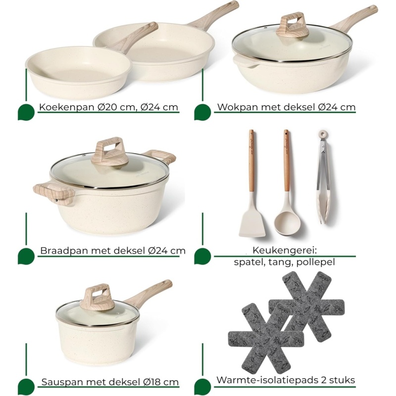 Kõik-ühes lahendus: Komplekt sisaldab kõike vajalikku alates pannidest ja pottidest kuni serveerimistarvikuteni.