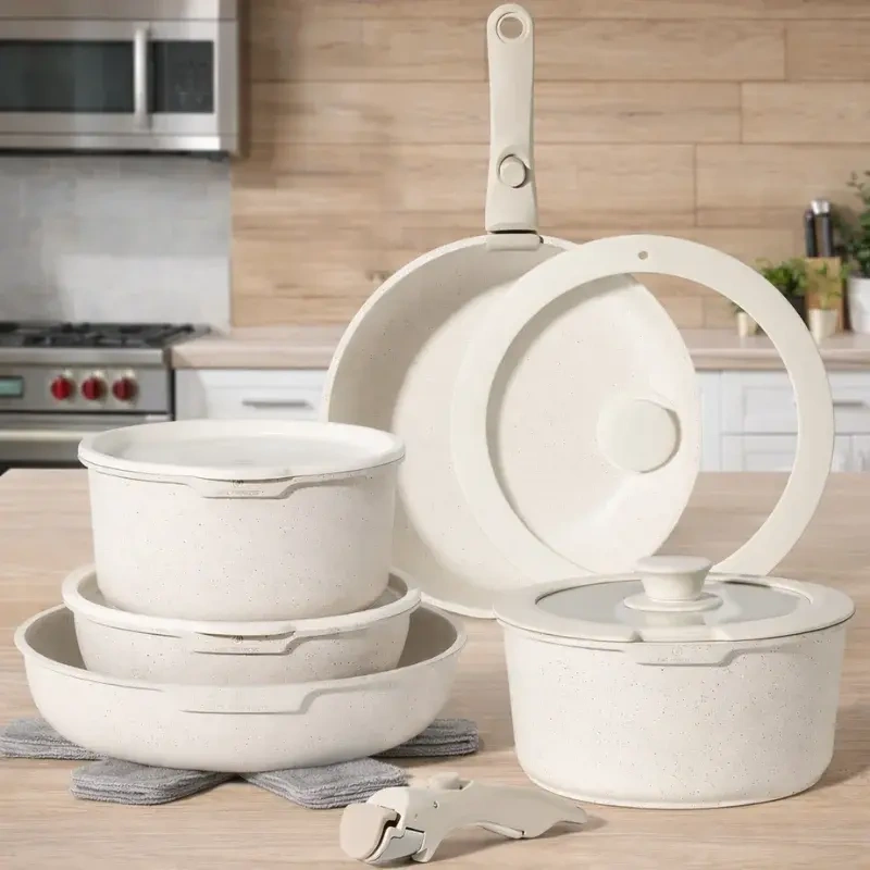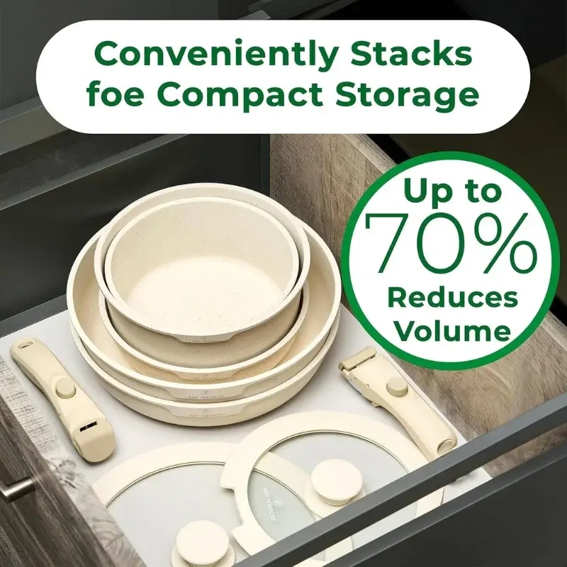 Just Perfecto JL-999 on revolutsiooniline lahendus sinu kööki. Tänu nutikale eemaldatavale käepidemele saad panna pannid ja potid üksteise sisse, säästes kuni 70% kapiruumi. See komplekt ei ole ainult praktiline, vaid ka ülihea soojusjuhtivusega, pakkudes tervislikku toiduvalmistamist ilma toidu kinnijäämiseta.