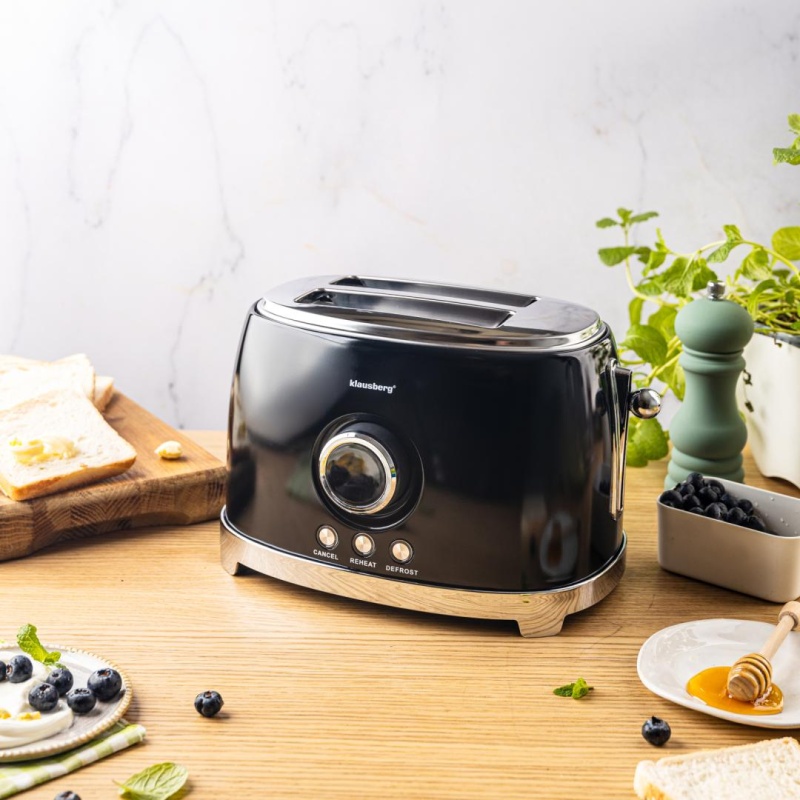 Klausberg KB-9025 on retro-stiilis röster, mis püüab pilku oma süsimusta läikiva korpuse ja säravate kroomdetailidega. Nagu ka selle sõsarmudel, on see varustatud nutika LED-taimeriga, mis muudab hommikusöögi valmistamise mugavaks ja visuaalselt nauditavaks.