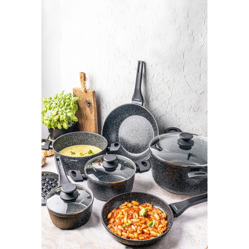 Esitage oma köögis tõeline kokandusrevolutsioon selle 12-osalise komplektiga, millel on non-stick pind. Eksklusiivne disain ja võrratu funktsionaalsus teevad sellest komplektist ideaalse lahenduse igale kaasaegsele kokale.