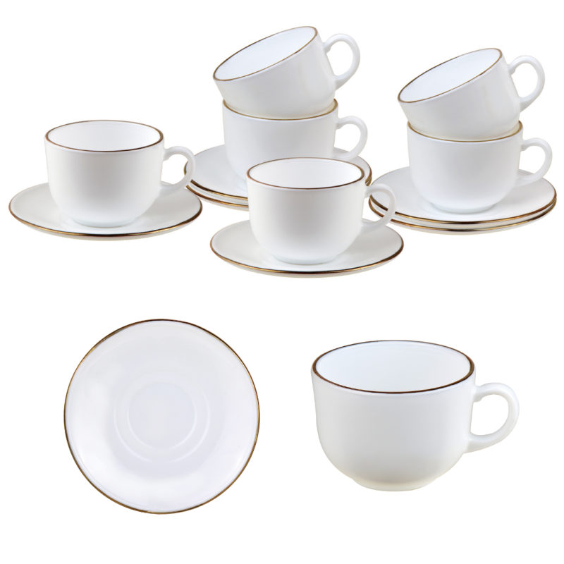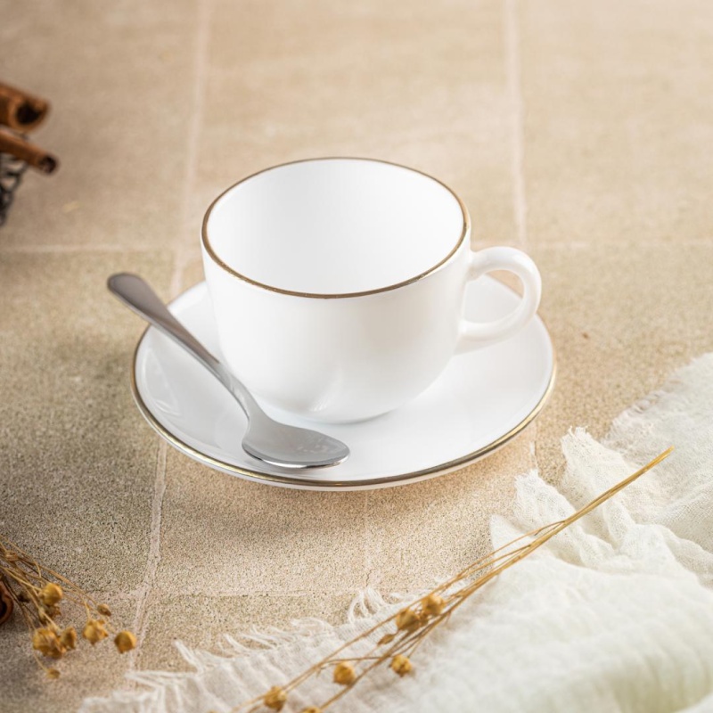 Stiilne tassikomplekt KINGHoff on suurepärane valik kohvi- ja teesõpradele, kes hindavad elegantsust oma lemmikjookide igapäevases tarbimises. Valge opaal tass koos delikaatse kuldse kaunistusega loob peene, kuid sofistikeeritud efekti, mis näeb välja kaunis nii igapäevaselt kui ka külaliste vastuvõtmisel.