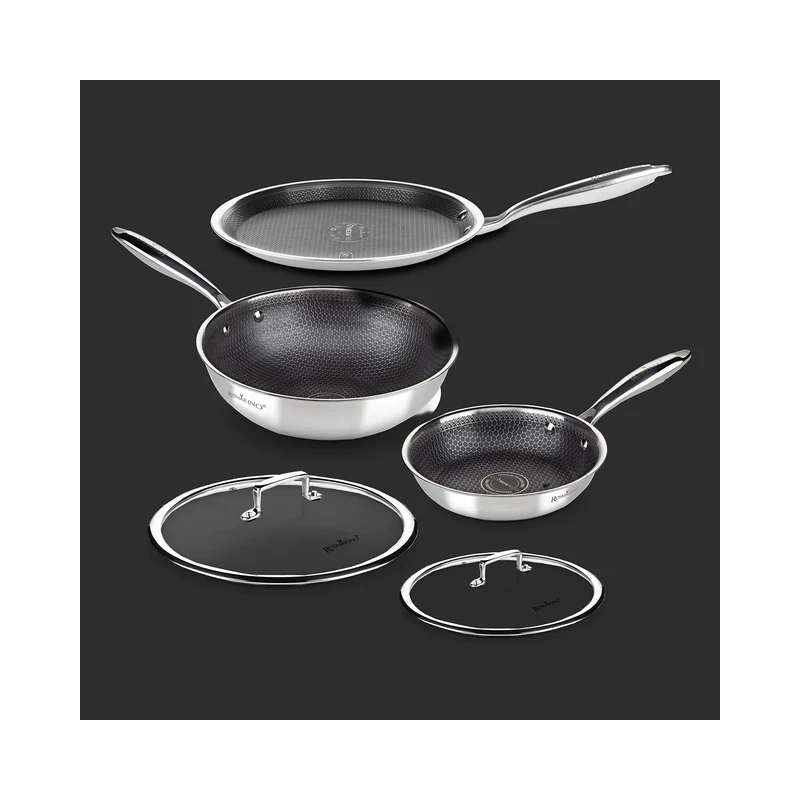 Eksklusiivne 5-osaline komplekt nõudlikule kokale. Sisaldab HexaPRO sarja "hitte": 28 cm wok-panni ja 28 cm pannkoogipanni koos täiendava 20 cm praepanniga. Kriimustuskindel hübriidtehnoloogia ja Tri-Ply konstruktsioon.